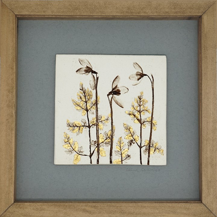 Box Framed Snowdrop Tile with 24ct Gold Leaf