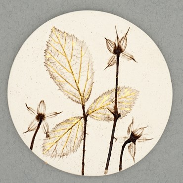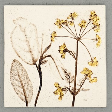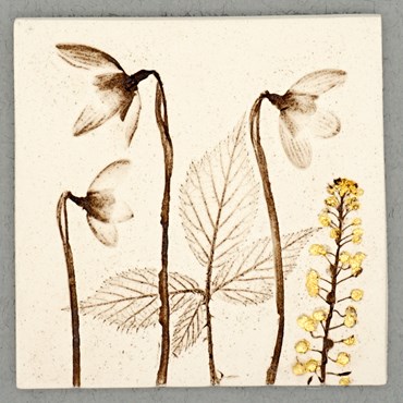 Each tile has beautiful botanical imagery, reflecting Lisa’s love of the natural world. The tiles come in four different finishes – natural, cornflower blue, pale turquoise and 24ct gold leaf. Because Lisa uses 24ct gold the colour will never tarnish and will always retain a beautiful shimmer. The tiles have a small metal hanger attached on the reverse for displaying on a wall.